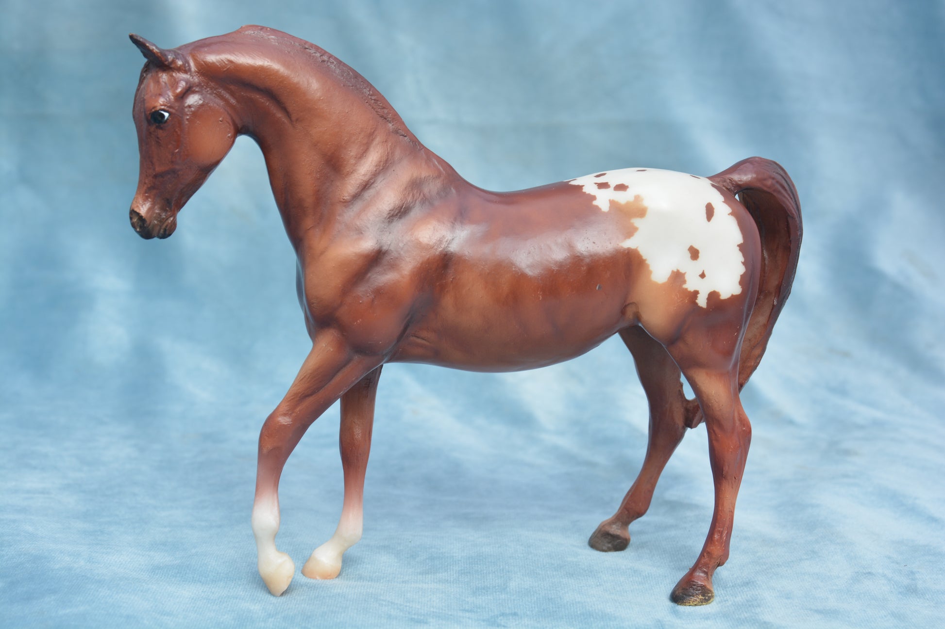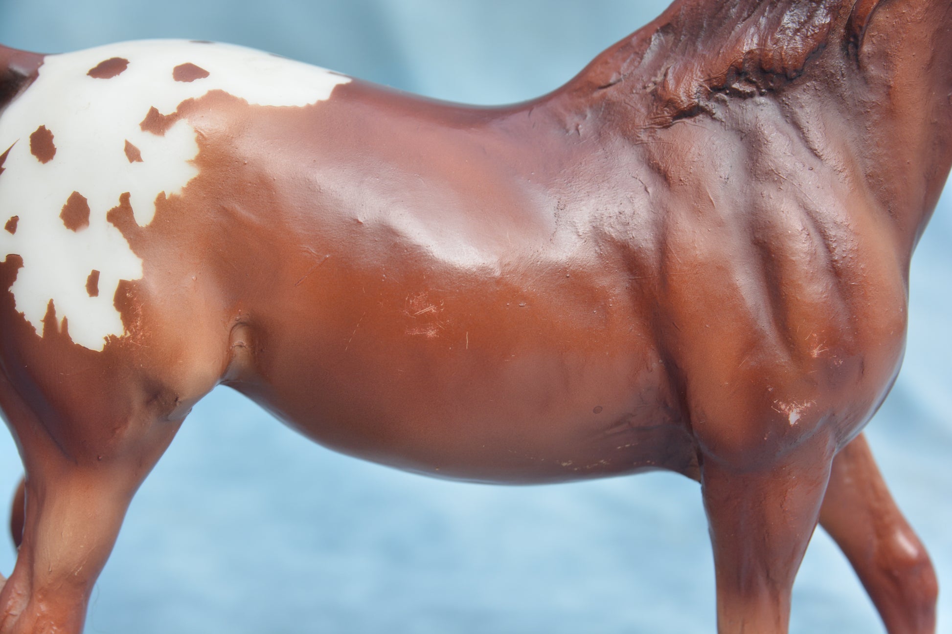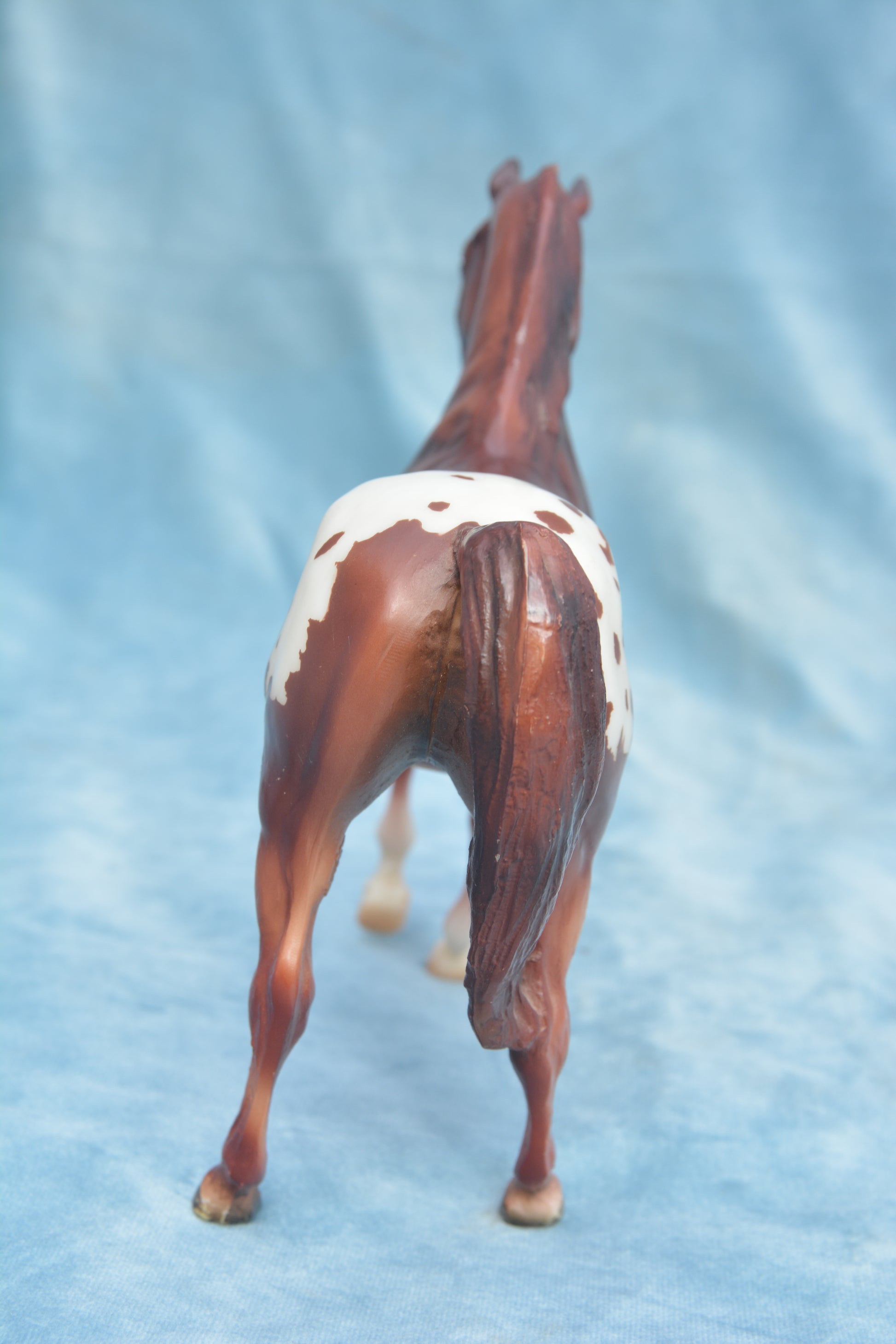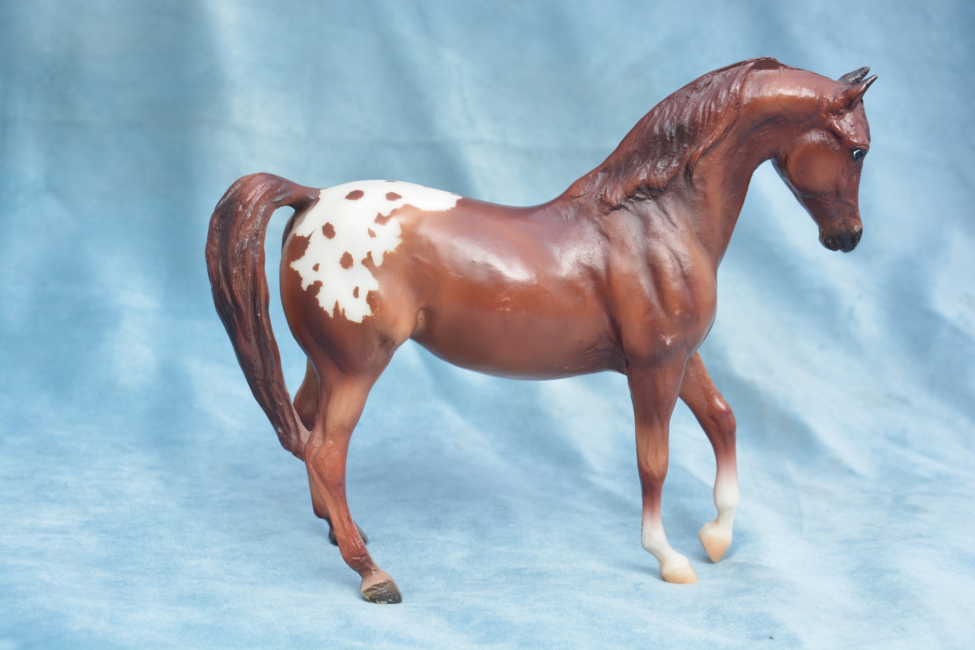 This is a Breyer Classic Chestnut Appaloosa on the Johar mould. This is a regular run Breyer produced from 2011-2016. She is a chestnut blanket spotted colour. This model is Classic scale.