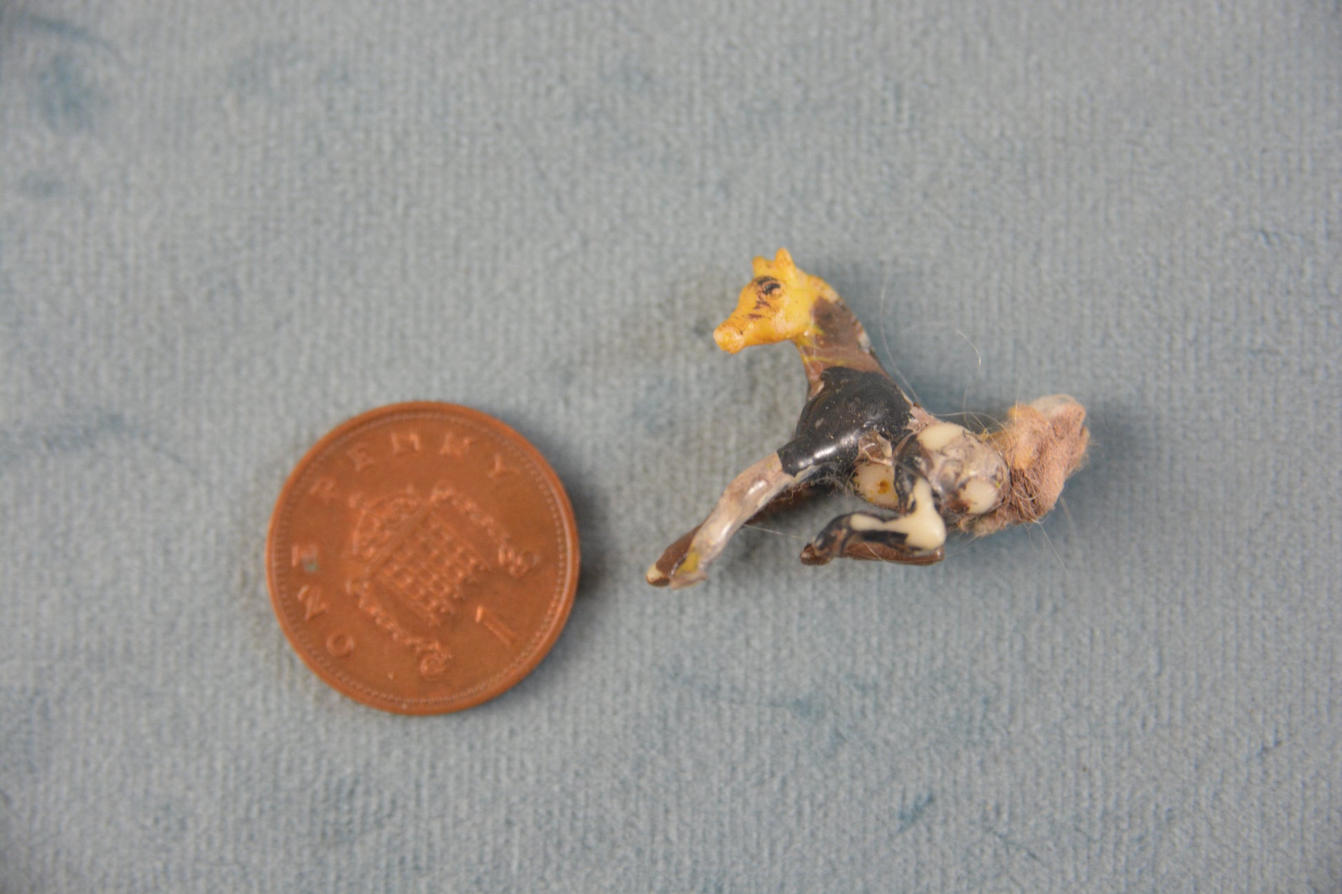 This model is custom finish and has been painted with a variety of different colours. I suspect she has been painted from the Mini Whinnie painting set. This paint will need stripping before she is repainted.