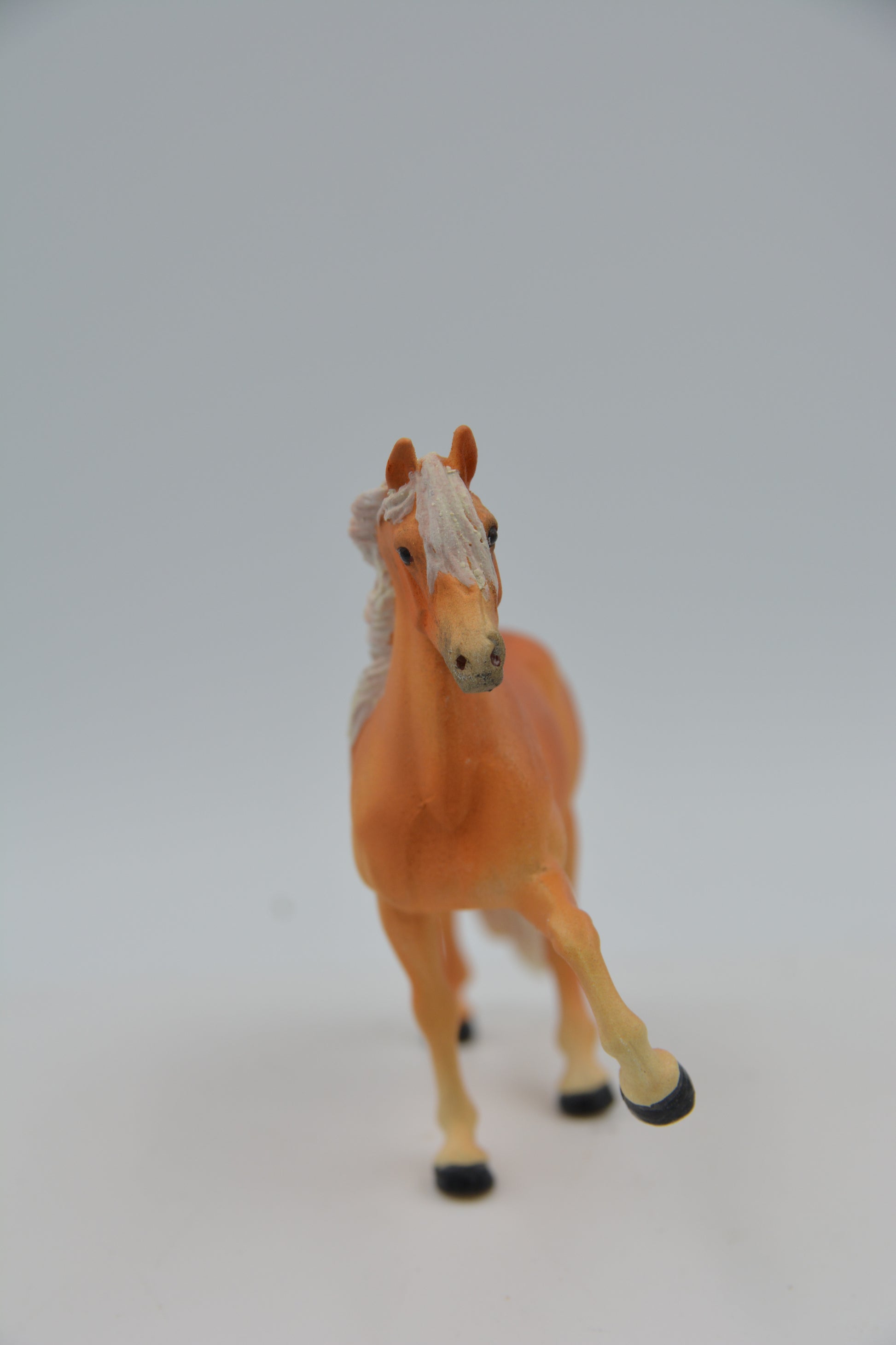 He is Stablemate (1:32 scale) and was painted by Catriona Harris of Chestnut Ridge. He is signed on his belly and has his eyes, nostrils, edge of lips and hooves glossed. He is sealed to protect his finish.
