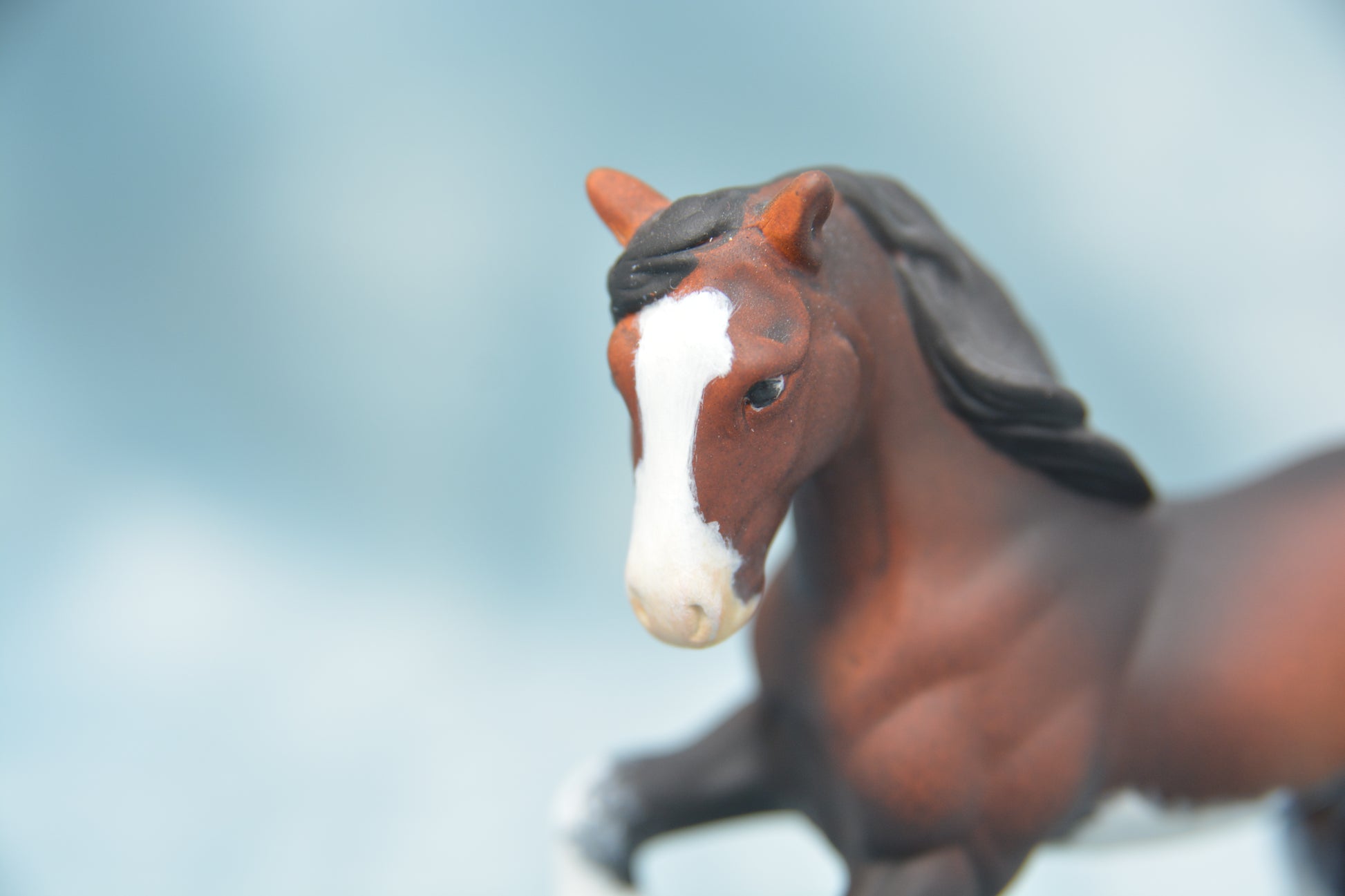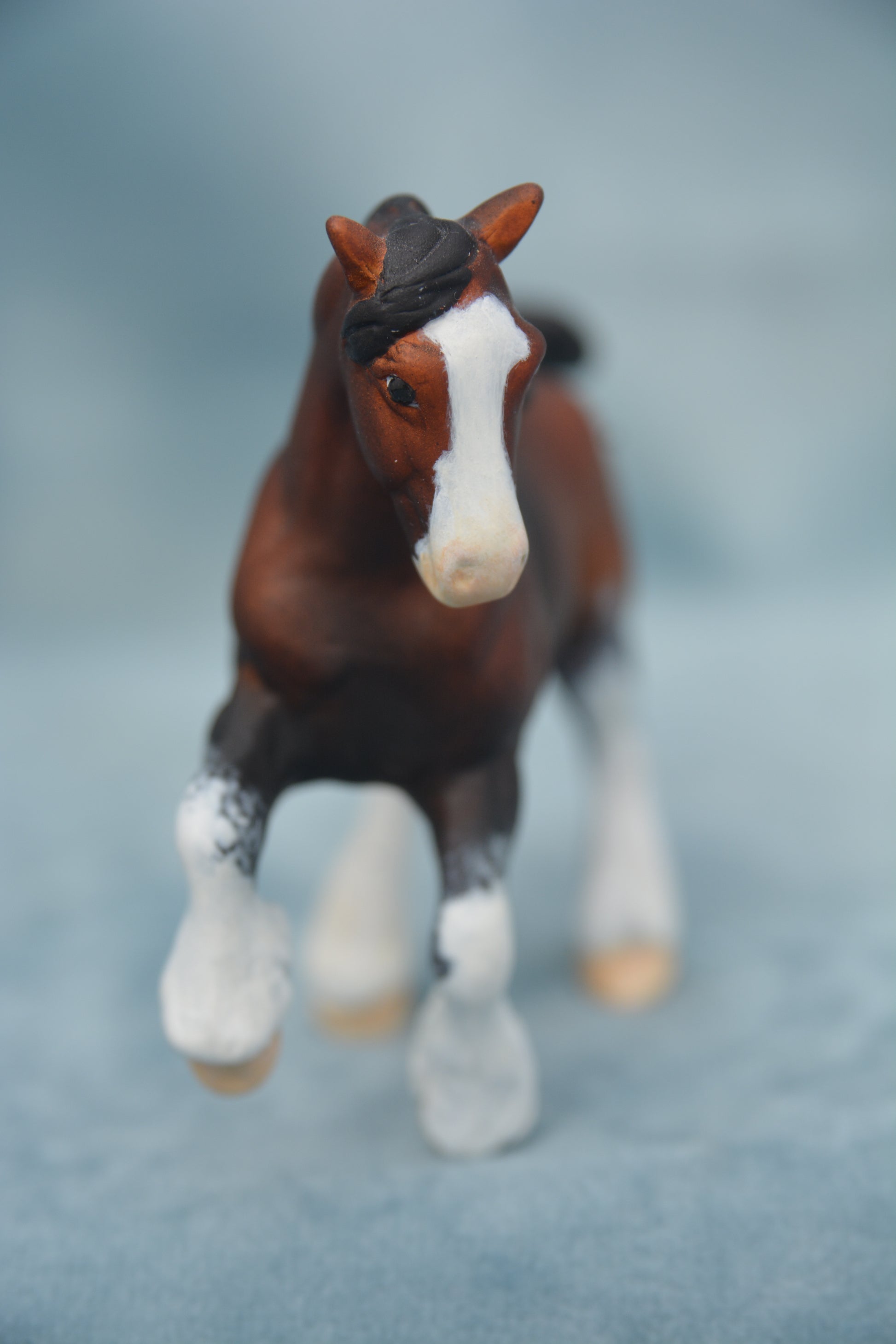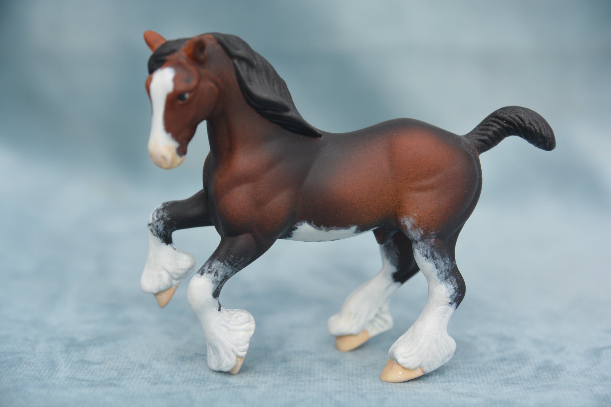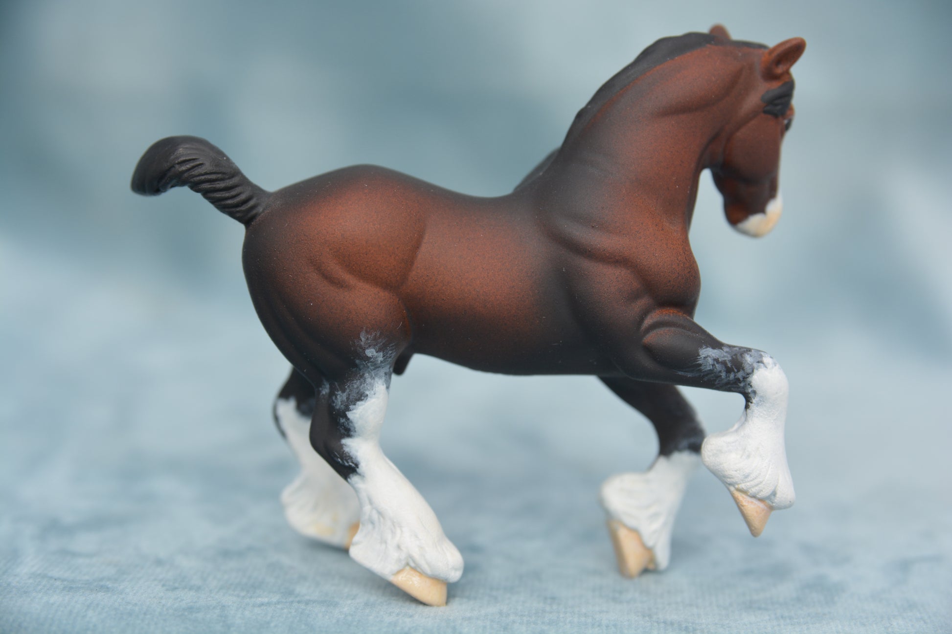 This is a Stablemate scale model horse. This model is a custom Breyer G2 Clydesdale. This model has been painted to a lovely bay sabino with lots of shading and heavy mapping on the legs.