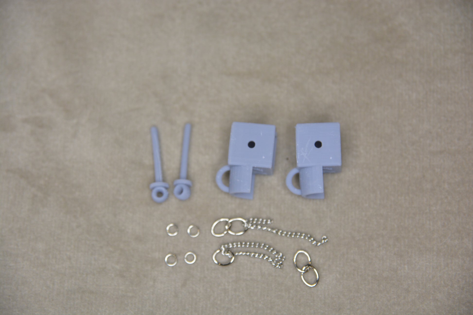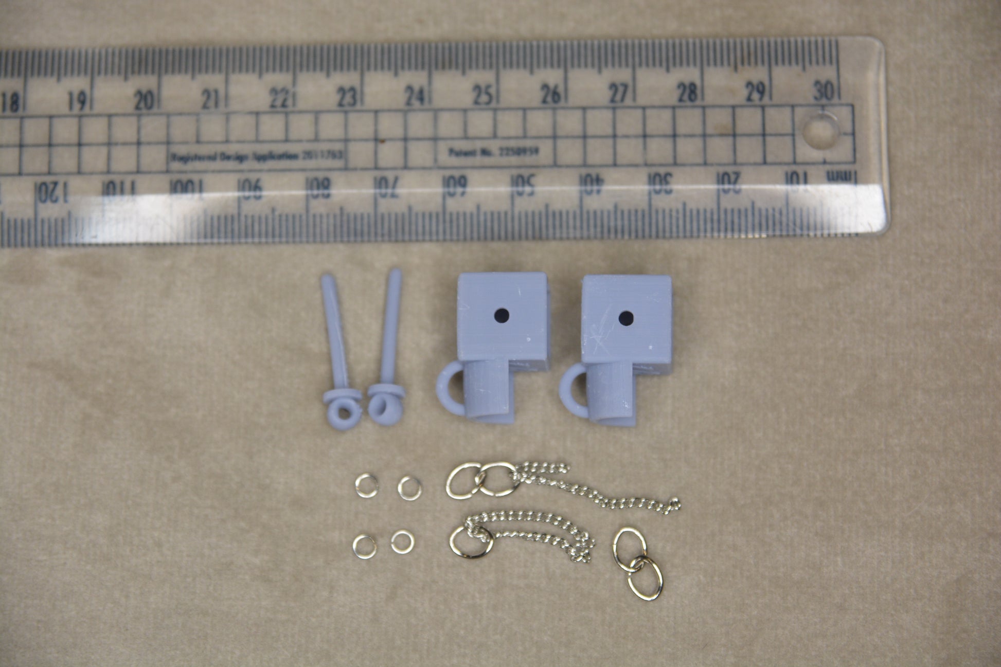 These jump cups are suitable for making Traditional (1:9) scale jumps for model horses. They are grey in colour. Included are two cups and pins to hold them in place. They are made of plastic and can easily be primed and painted to any colour you want. Use metallic paints to give a metal effect.