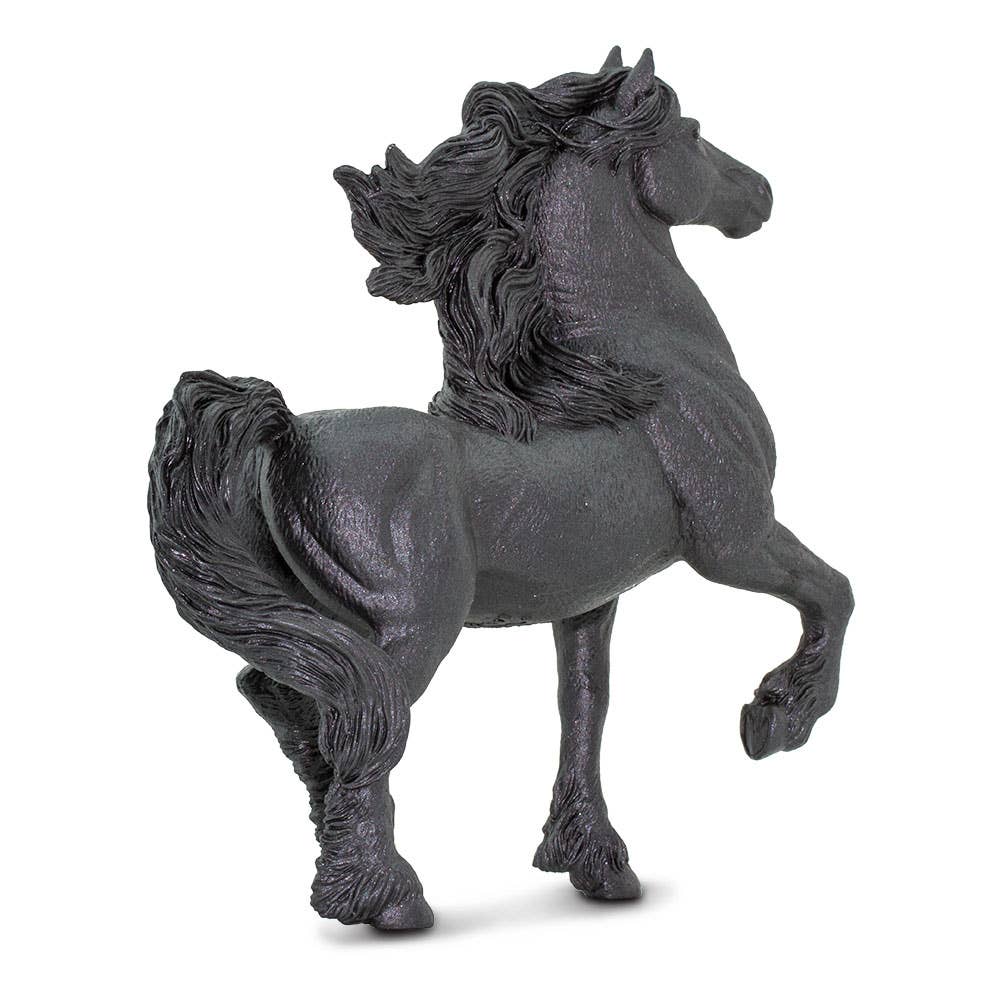 Size and Colour: This figure is 5 inches long and 5 ¼ inches tall, about the size of a slice of bread. Like most real Friesians, it is almost entirely black, with glossy black eyes, a black coat, and black mane and tail.