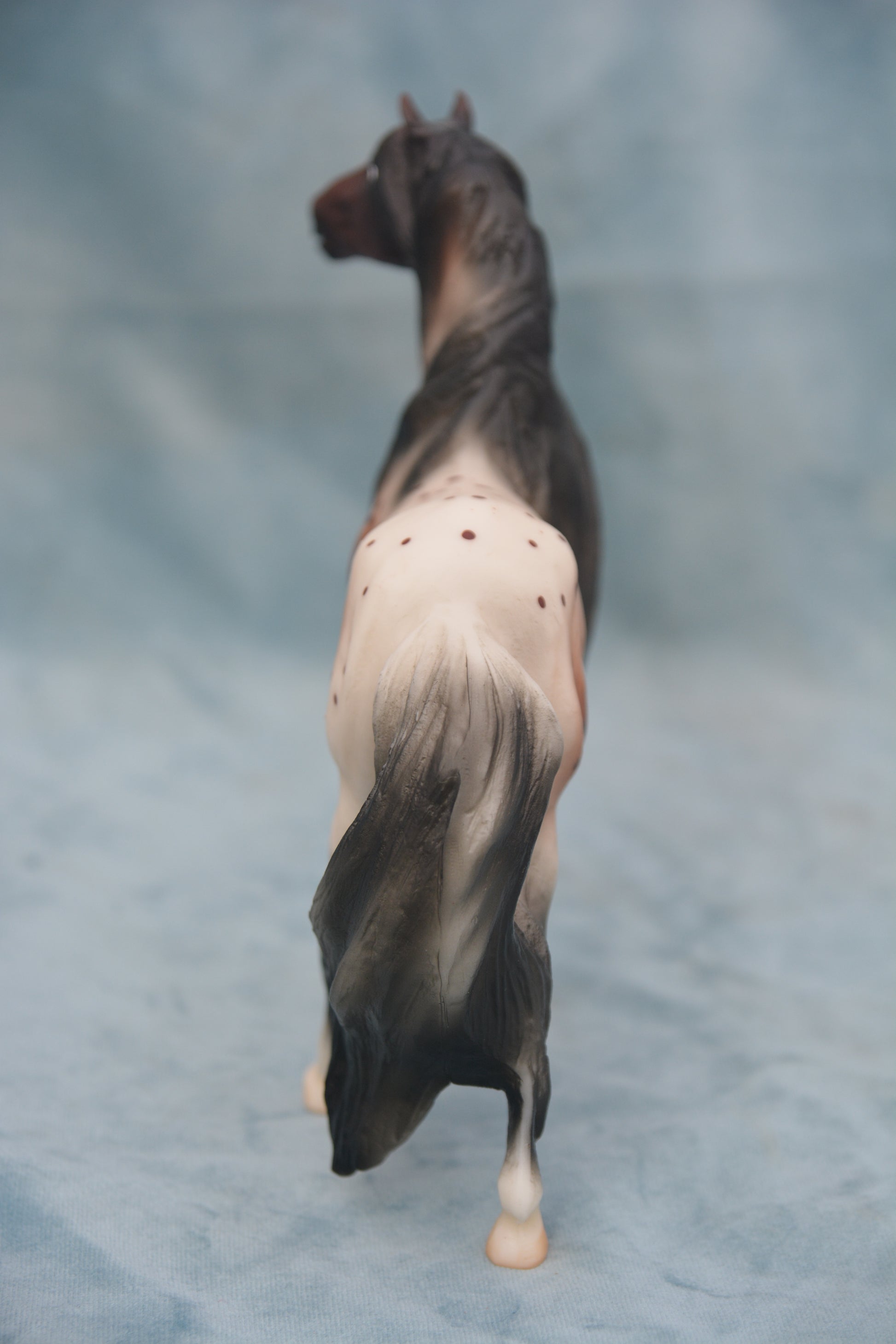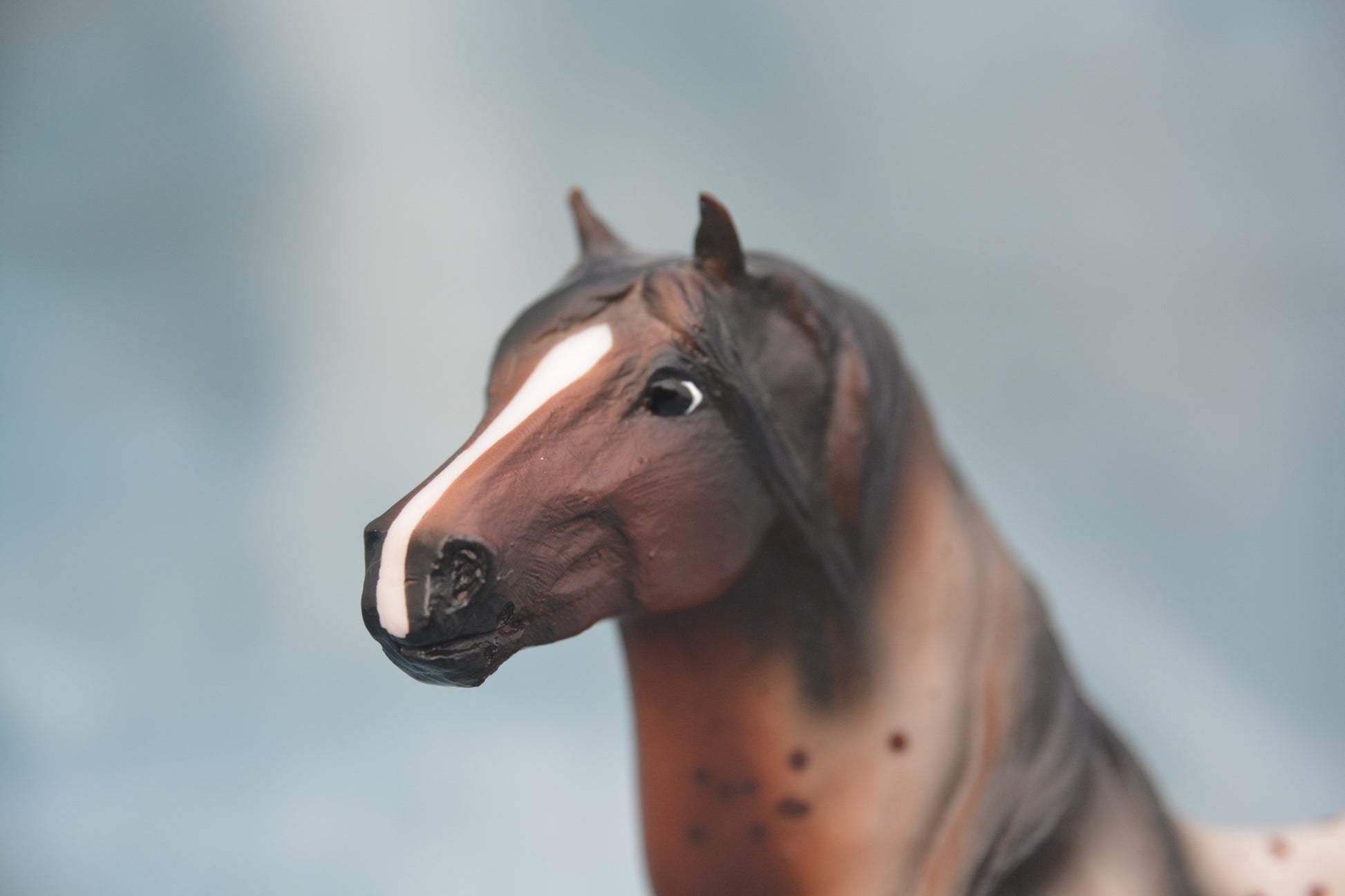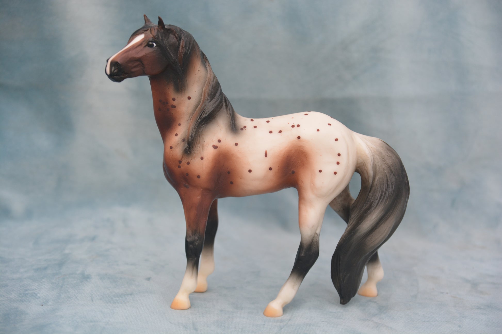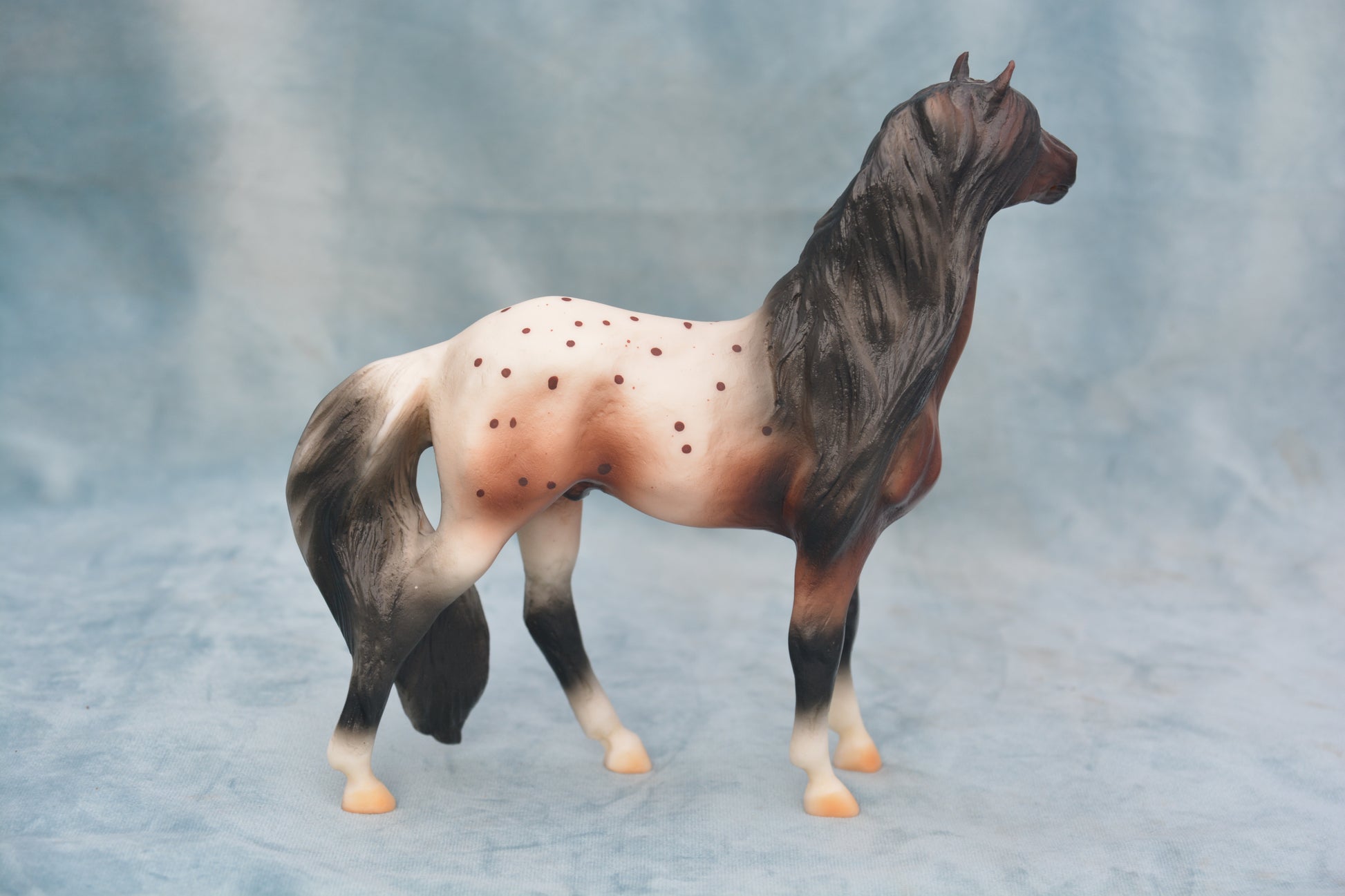 This is a Classic scale model horse. This is a regular run Bay Appaloosa Mustang. This is model number 925 and was produced from 2017-2018. This is a regular run Breyer model horse and is on the Mesteno mould.