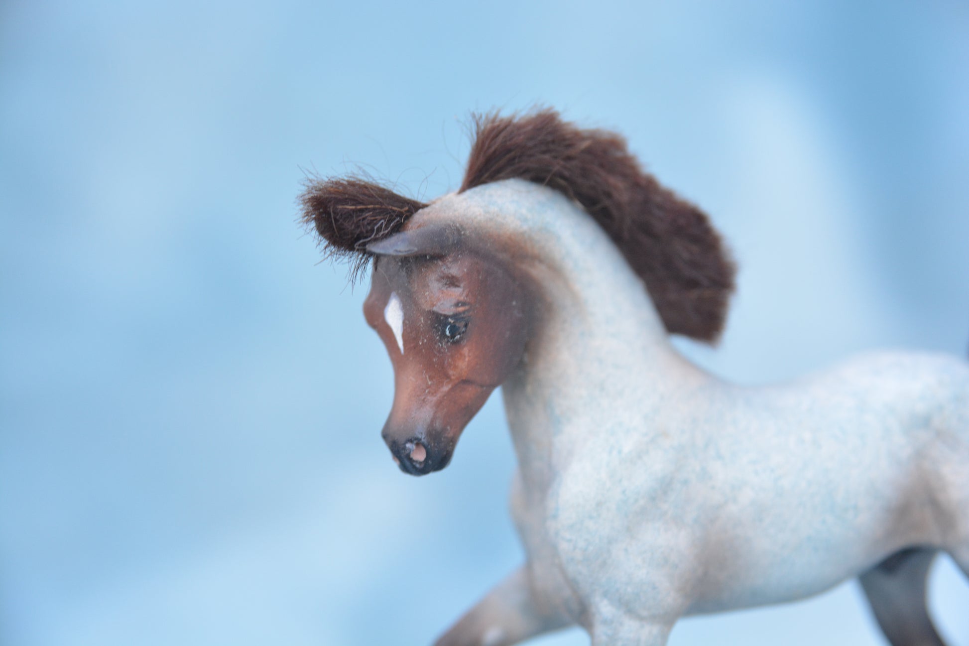 This beautiful model is a RubberNedz Foal in a lovely blue roan colour. This beautiful model is made of latex with a mohair mane and tail. This is a collector's piece and is not a toy. These models are produced at Animal Artistry.