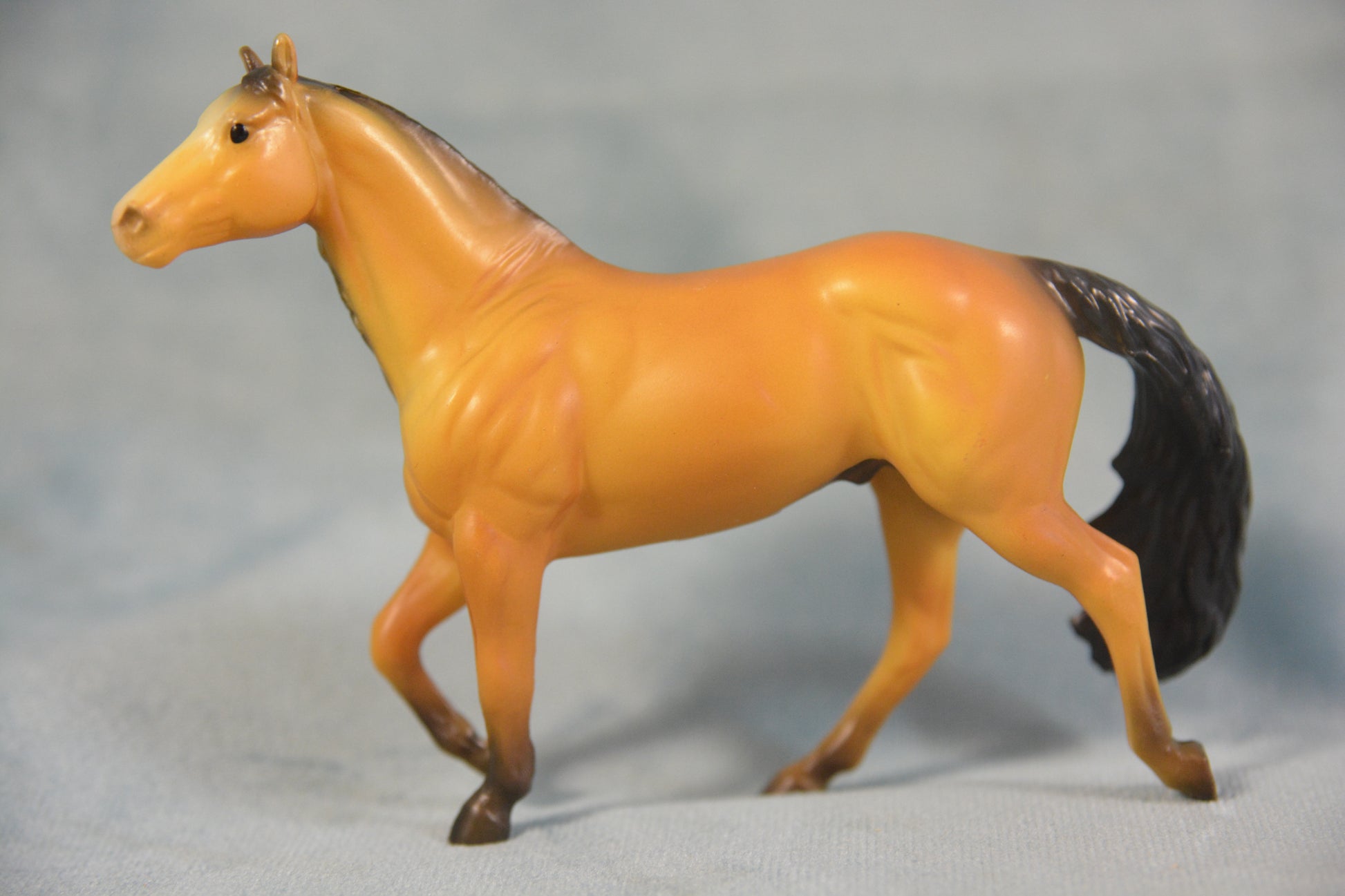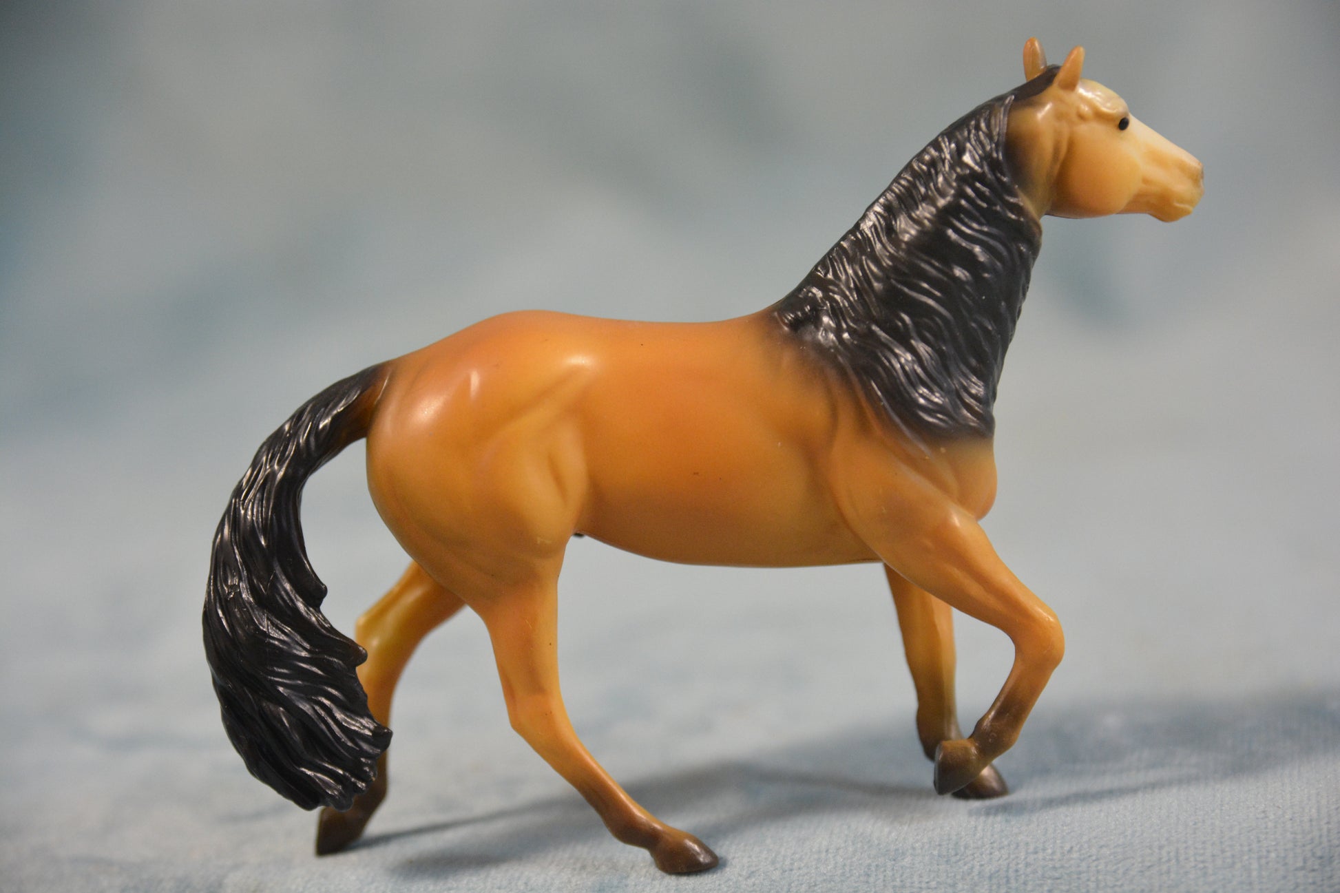 This is a Breyer Stablemate buckskin Smart Chic Olena. This model was only available to Vintage Club members in 2024 and came as part of a five piece set. This is model number 10030 and is on the M1 Smart Chic Olena mould. He is bald faced buckskin in colour. Limited to just 1,000 pieces.