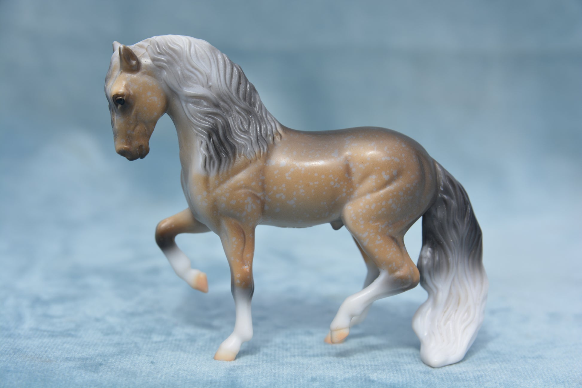 This is a Stablemate scale model horse. This model is from the Breyer Stablemate Mystery Foal Surprise - Series 1 set. He is a grey G2 Andalusian. This model was produced from 2012-2013 and is model number 5940.
