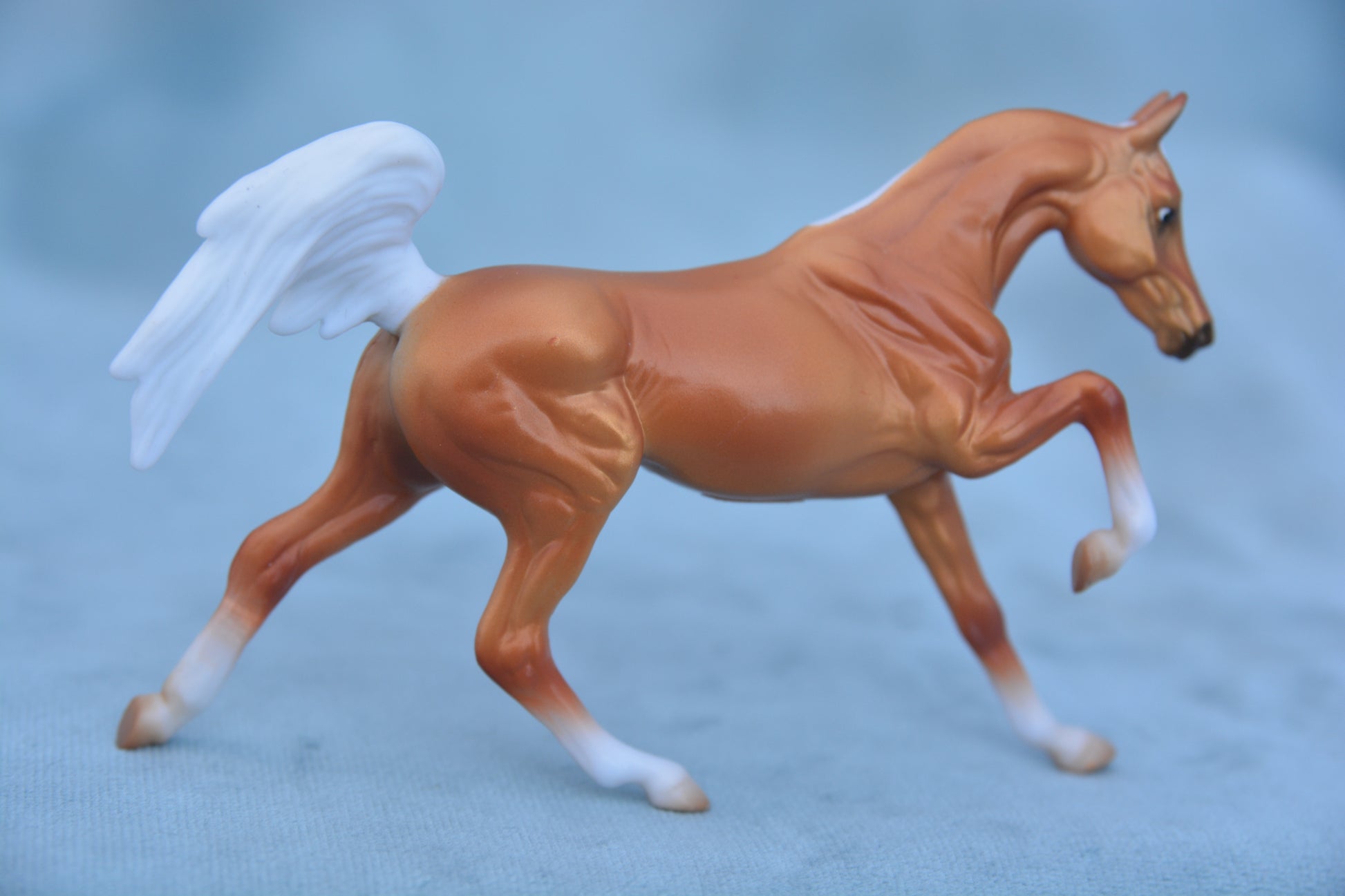 This is a Breyer Stablemate Palomino Galloping Arabian Stallion