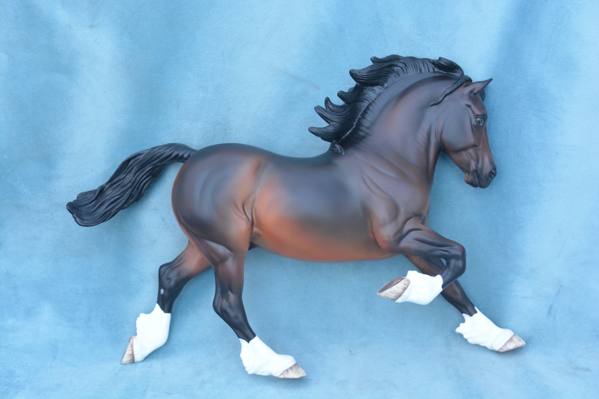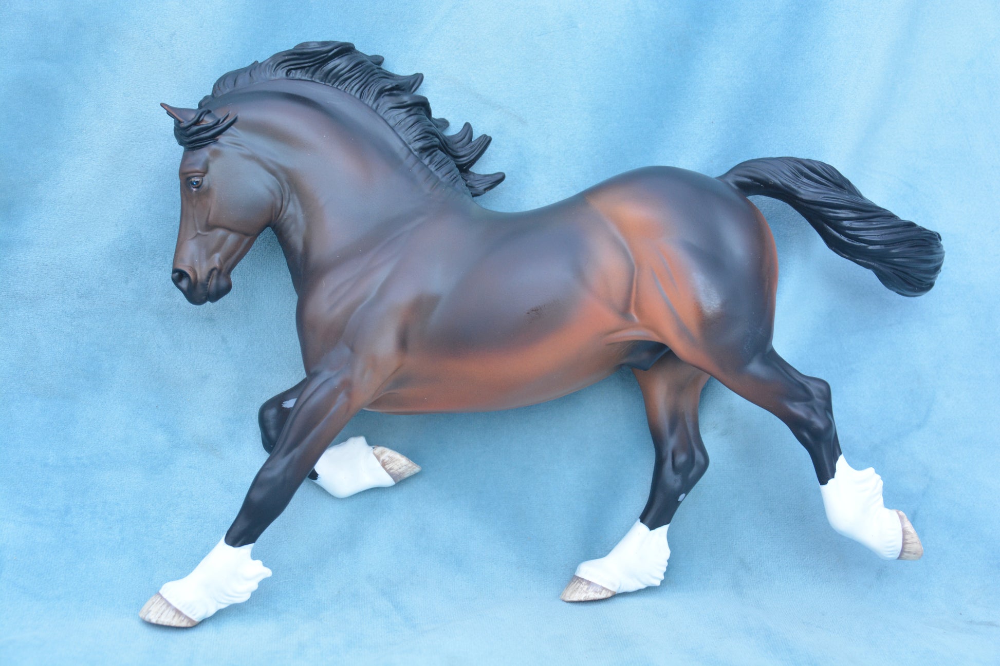 This is a Copperfox Celtic Warrior. This model was produced in 2016 and was limited to 250 pieces. This model is Traditional scale and is on the Welsh Cob mould. The model is bay in colour.