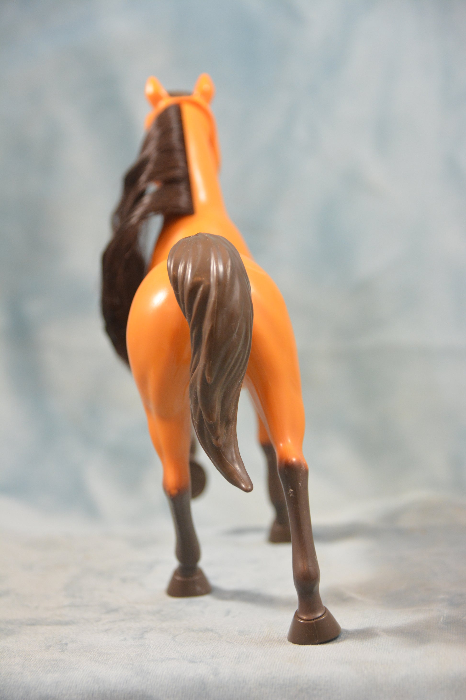 This lovely large model is between Classic and Traditional scale. He is based off of Spirit from the Spirit Riding Free series. He has a synthetic mane and a solid tail.