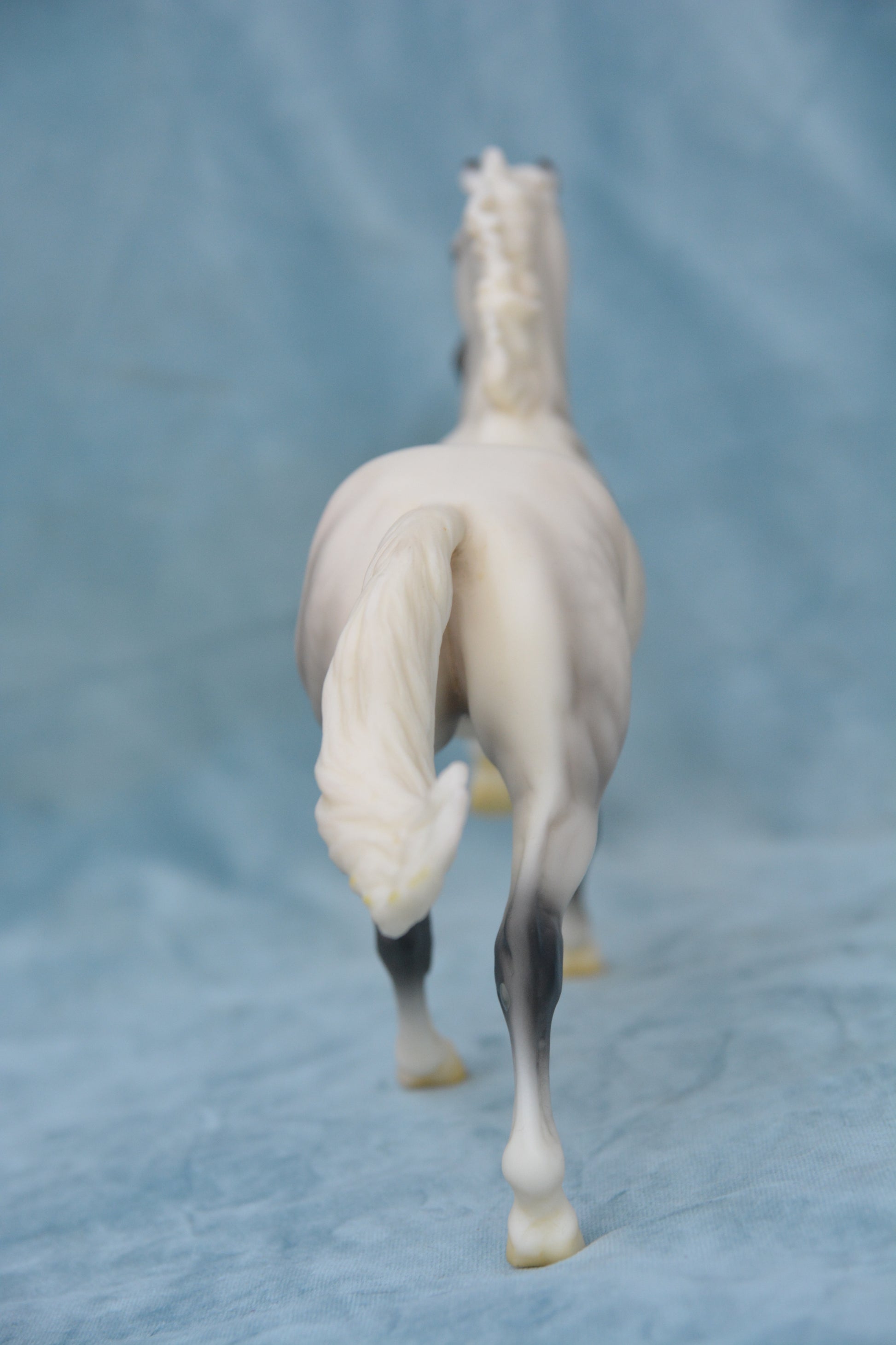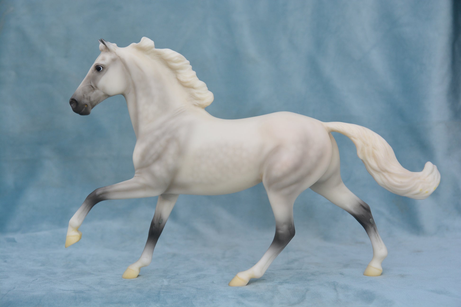 This is a Breyer Fun with Model Horses Flash. This model was produced from 2009-2010. This model is Traditional scale and was produced by Breyer Horses. He is on the Flash mould. He is grey in colour.