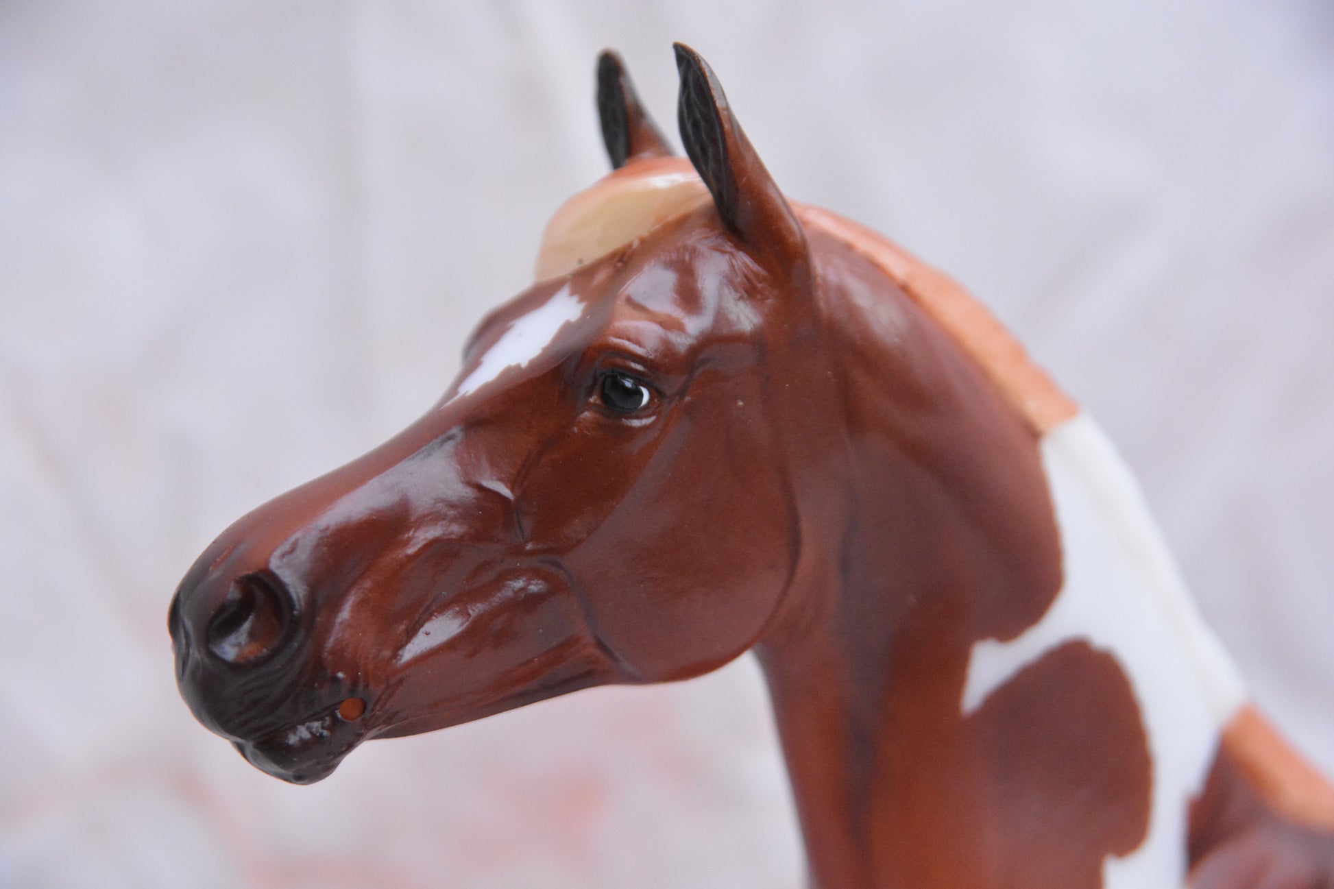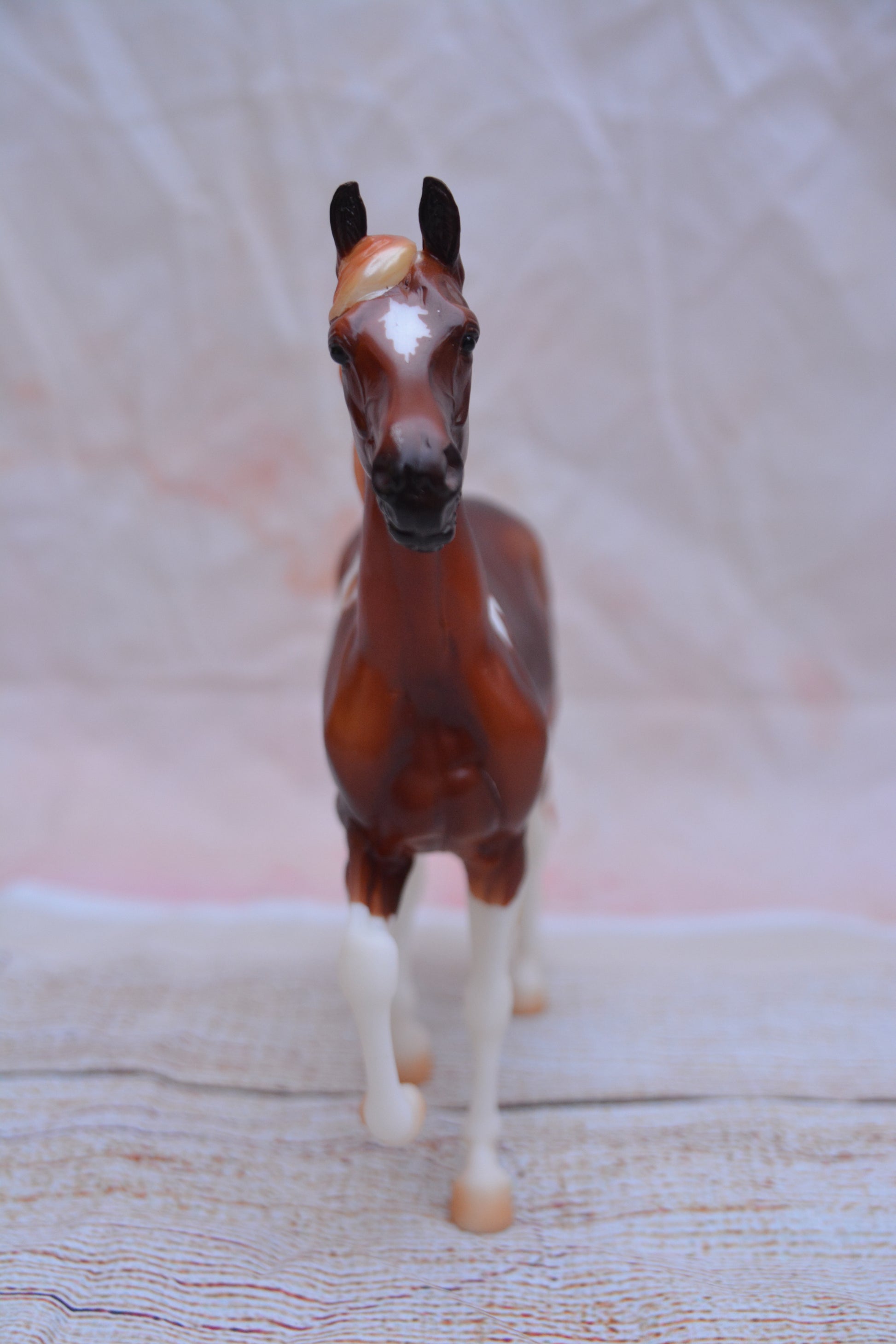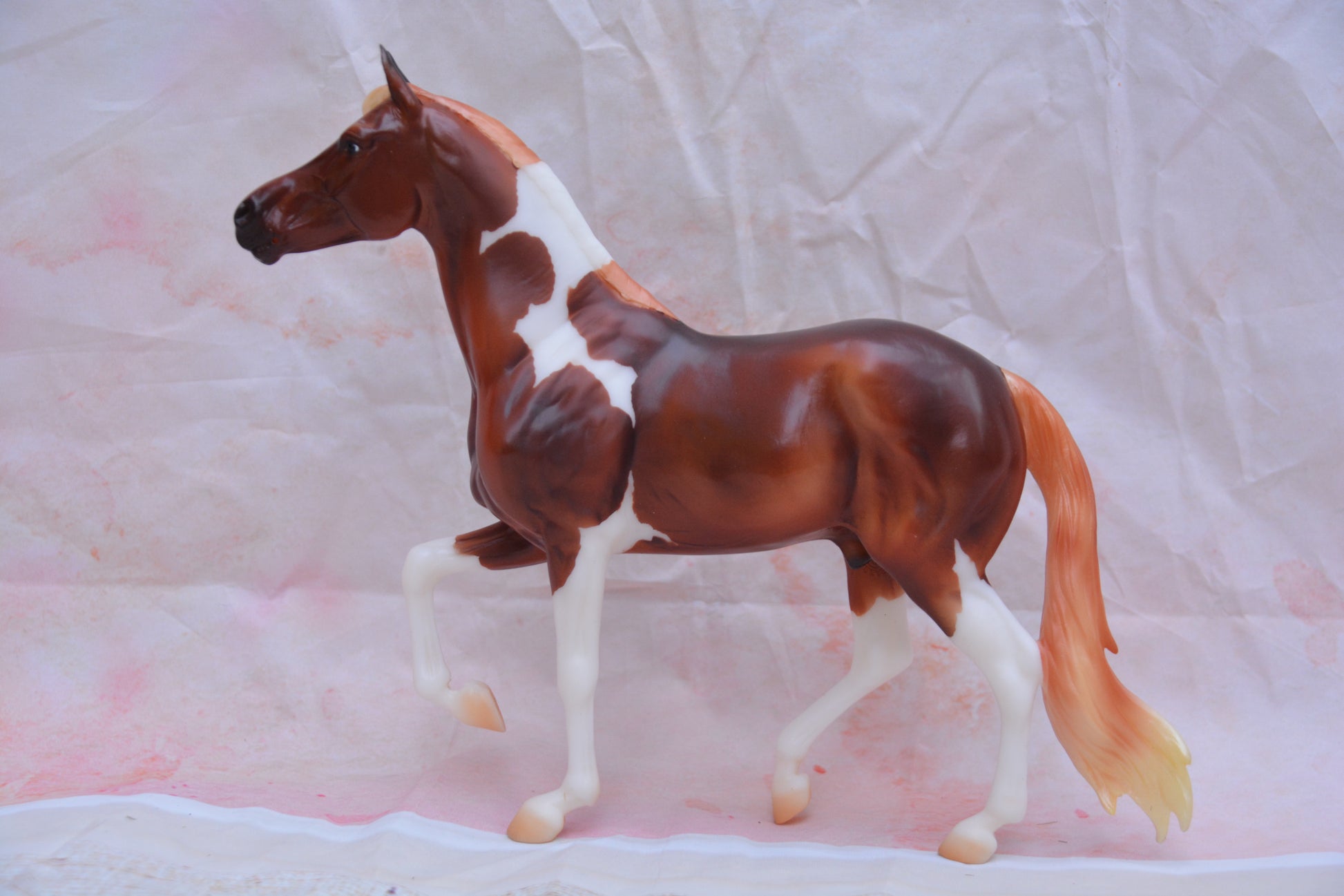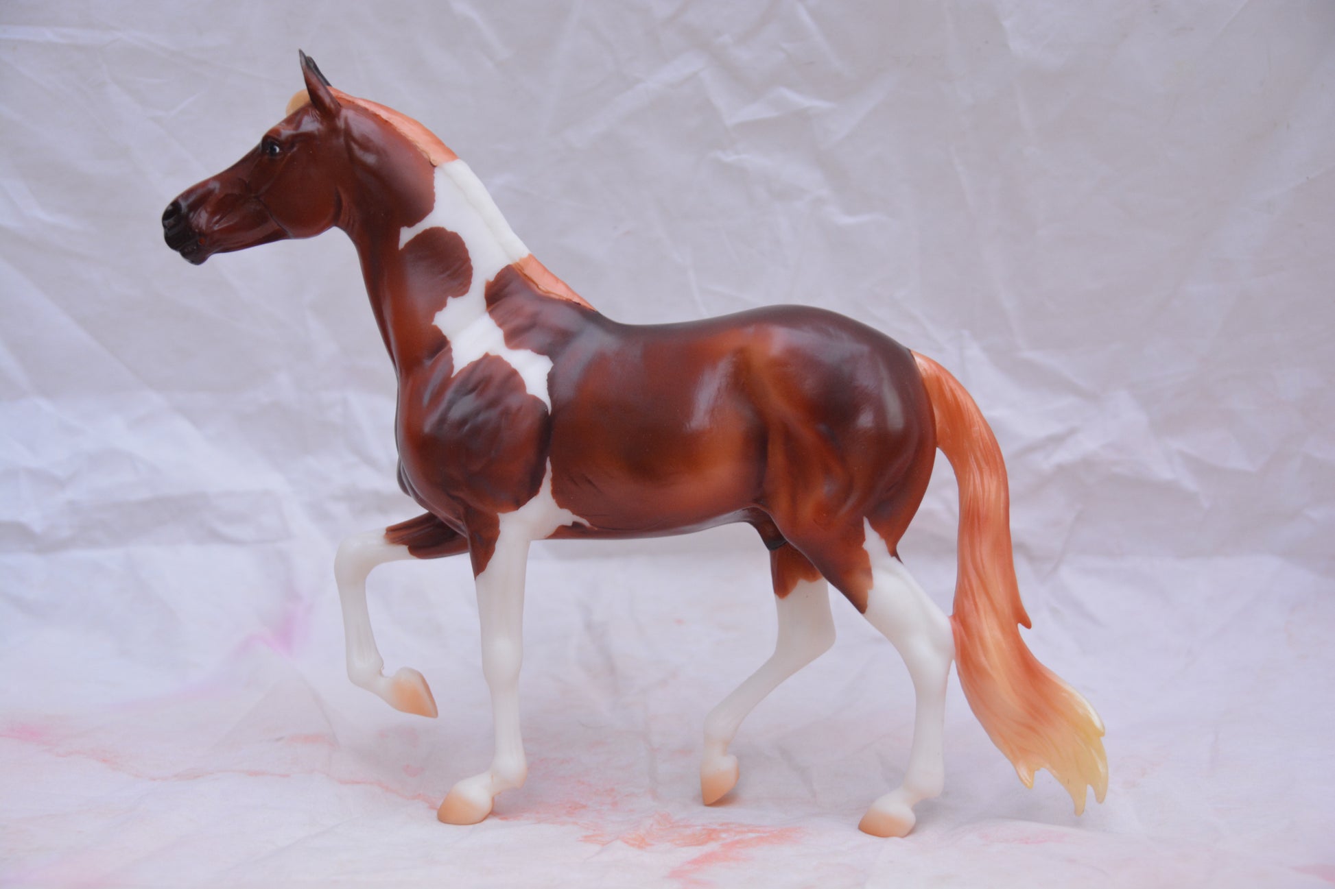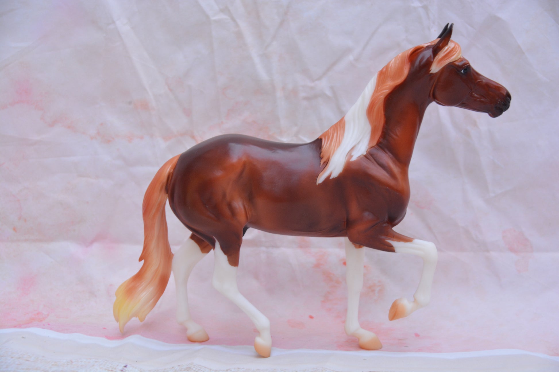 This is the brand new Breyer Mangalarga Marchador model. This model is Traditional scale and is a lovely chestnut tobiano colour. This is the first regular run release on the Breyer Mangalarga Marchador mould.