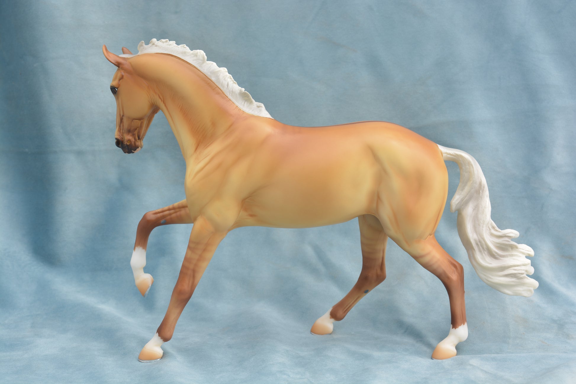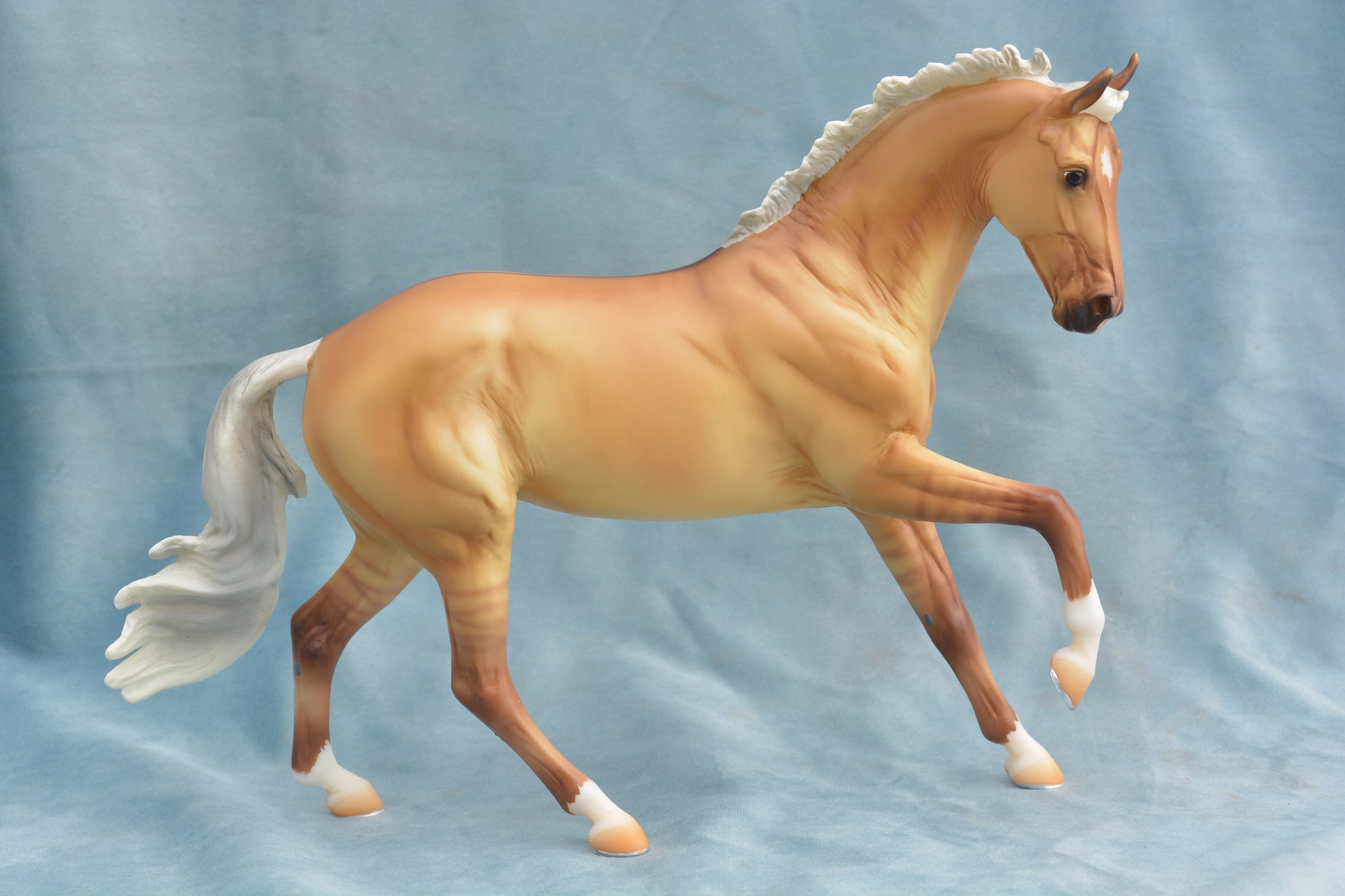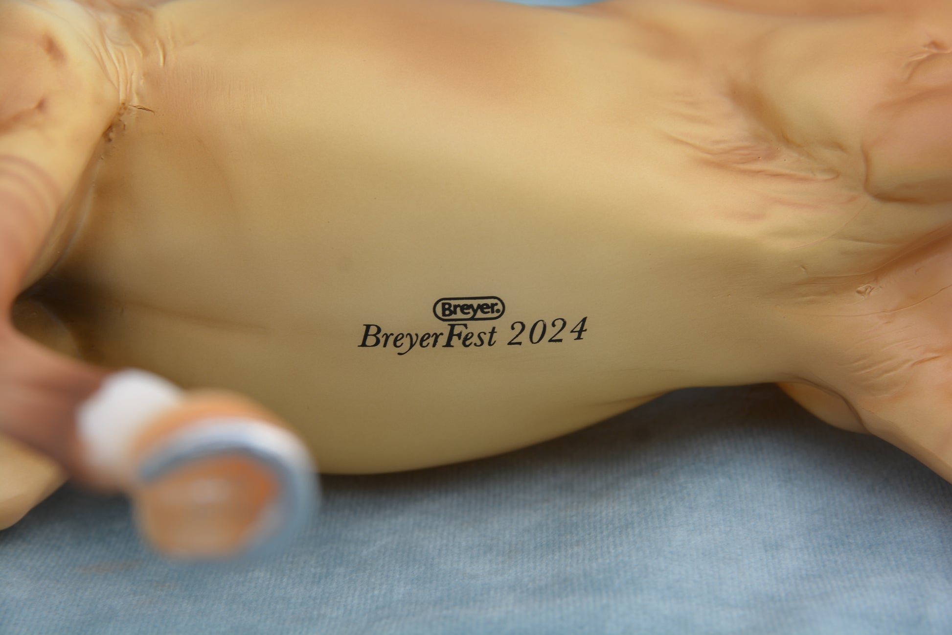 This is a Traditional scale model horse. This is the Breyer model Miss. Independent. Miss. Independent was a BreyerFest 2024 special run. She is dun in colour with a dorsal stripe and leg barring. This is model number 10089 and was only available at BreyerFest 2024. She is one of 2,200 made. Marked BreyerFest 2024 on her belly.