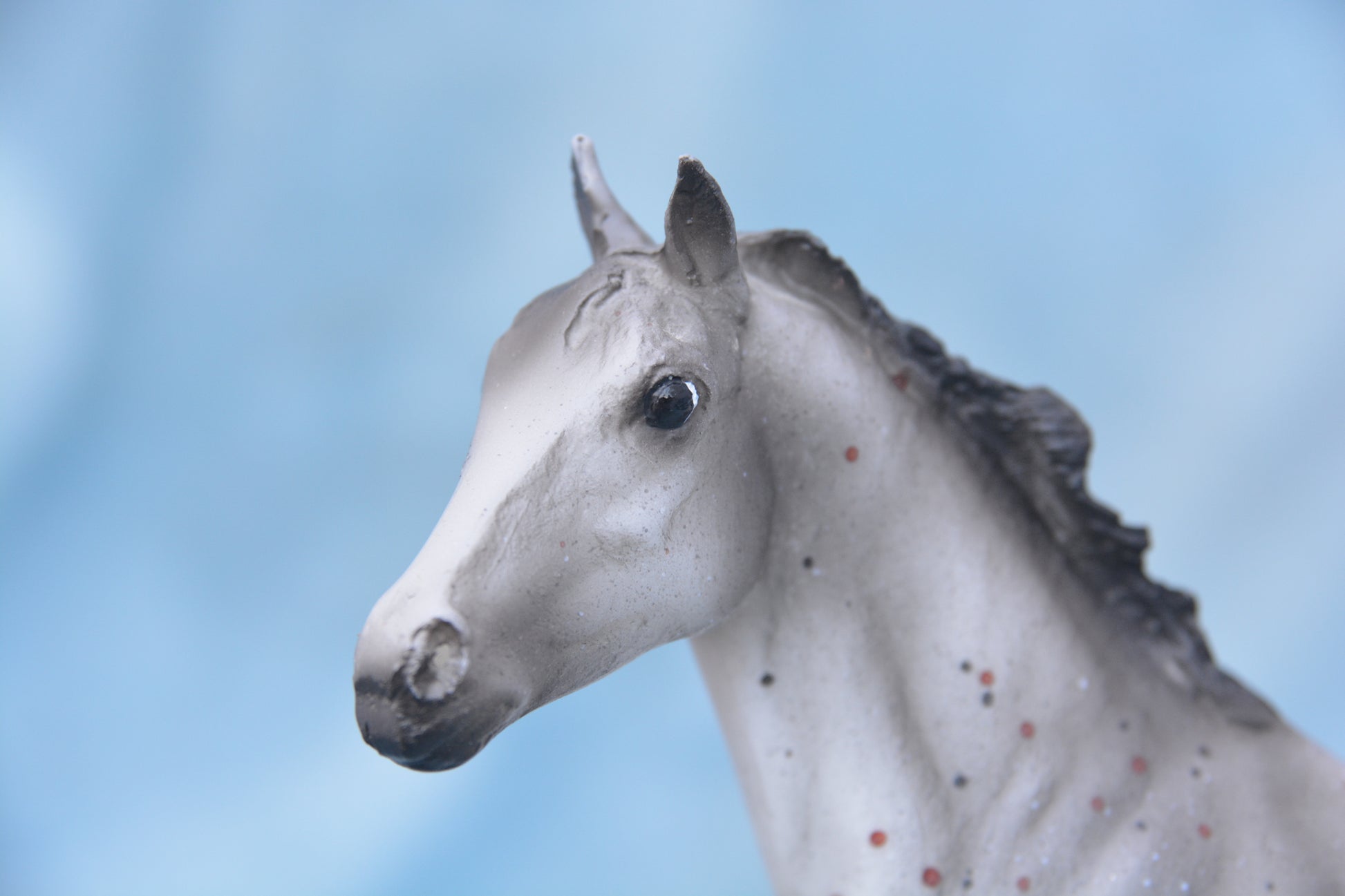 This is a Breyer Classic Wild Blue. This model was produced from 2009 onwards. This model is Classic scale and is on the Duchess mould. The model is a lovely roan colour and was originally from the Wild Blue and book gift set.